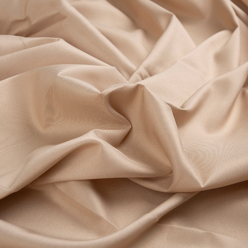 全滌染色面料是我們公司的主要產品。這種染色面料是由99.99%的聚酯長絲織成的。灰色織物表面磨砂后,成品織物會變得細膩、柔軟,仿佛桃子的表皮一般。同時,滌綸織物具有更好的熱性能。