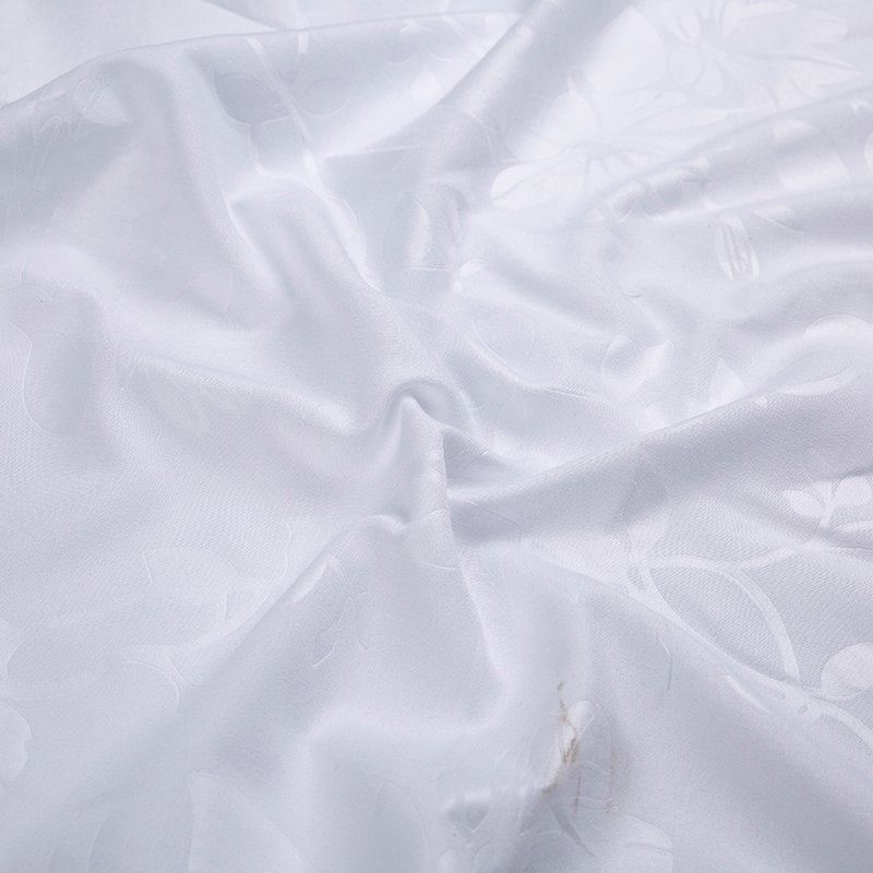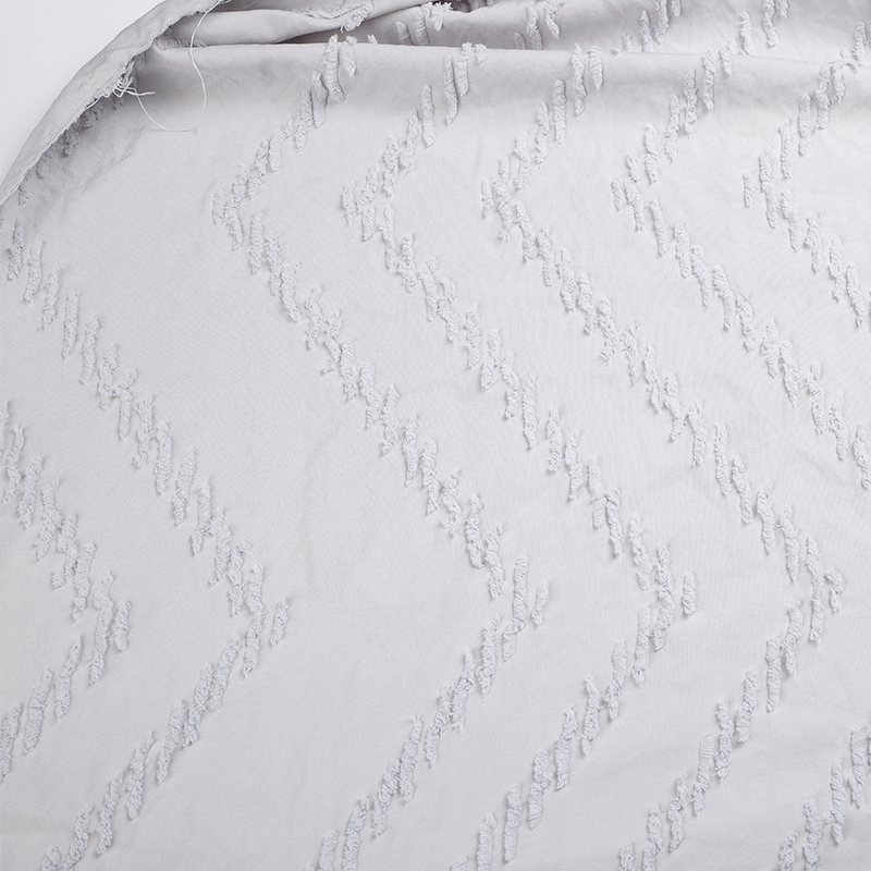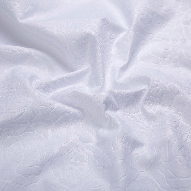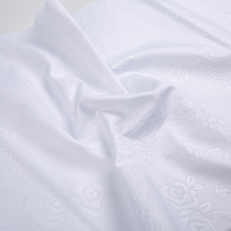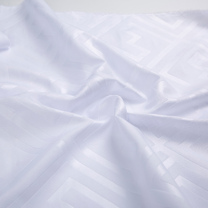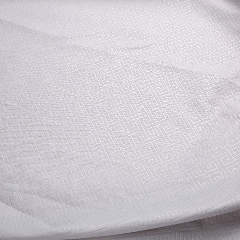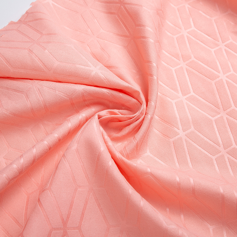 全滌剪花面料是我們公司新開發的產品。這種面料經過復雜的織造工藝和后處理,可以在表面產生凸起的花紋,而且這種花紋永遠不會消失。