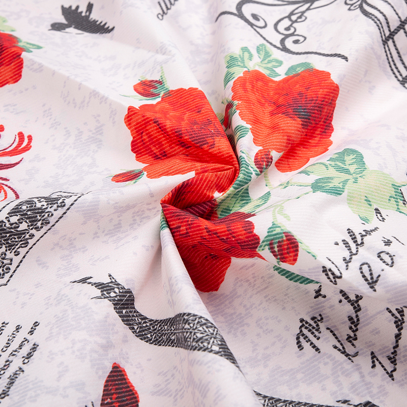 高質量的滌綸印花平紋尼在服裝面料中非常受歡迎,特別是工作服和褲子。普通滌綸印花平紋尼可用于各種場景,如桌布、包裝、餐具等。它是一種用途非常廣泛的面料。