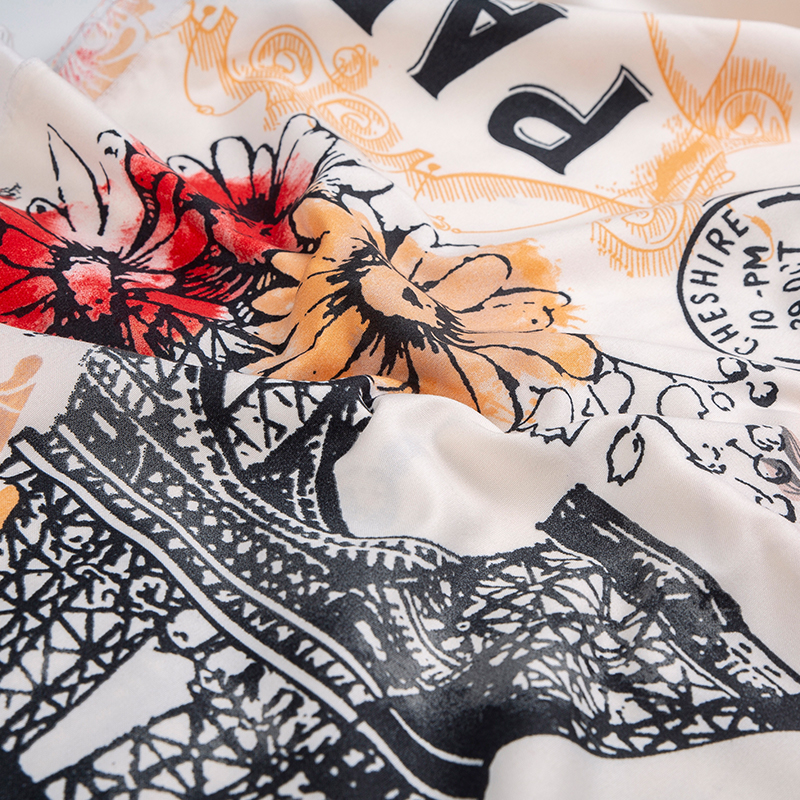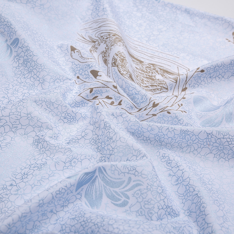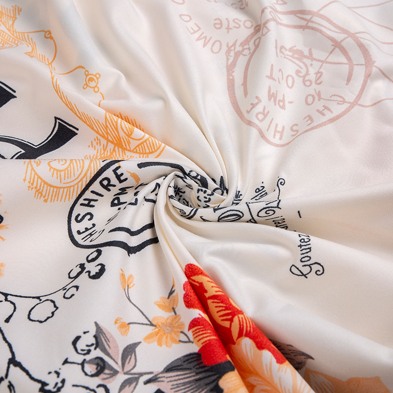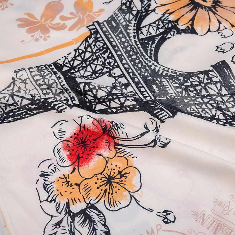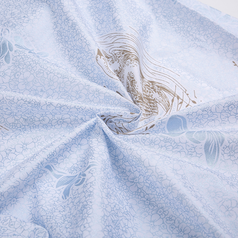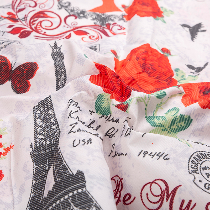 全滌印花面料是我們的主要產品之一。這種印花面料是由99.99%的聚酯長絲制成。灰色織物表面磨砂后,成品織物會變得細膩、柔軟,達到桃皮的感覺。同時,滌綸織物具有更好的保暖性能。
